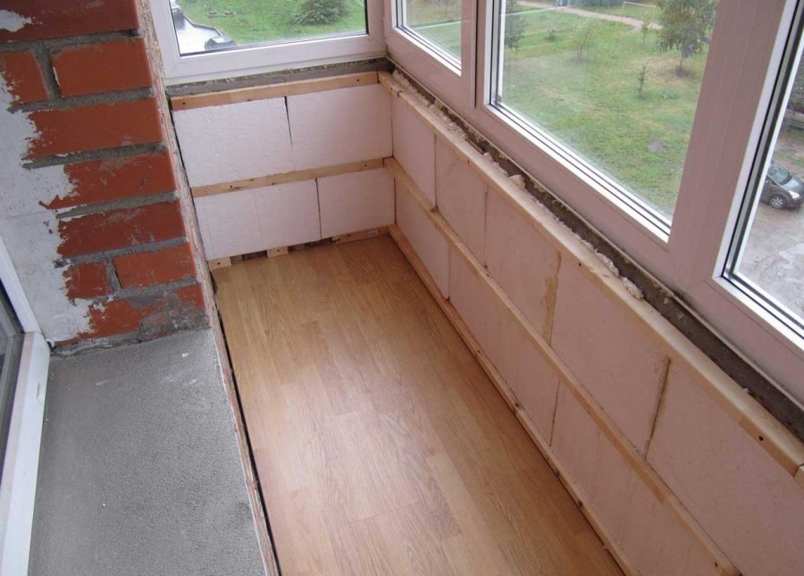 - Устройство плит происходит по всему периметру помещения, включая стены, поверхность потолка и пола. Если уложить материал только на стены, в таком случае затраты будут неэффективны – помещение останется холодным. Это обстоятельство играет большую роль при объединении балконной части с квартирой;