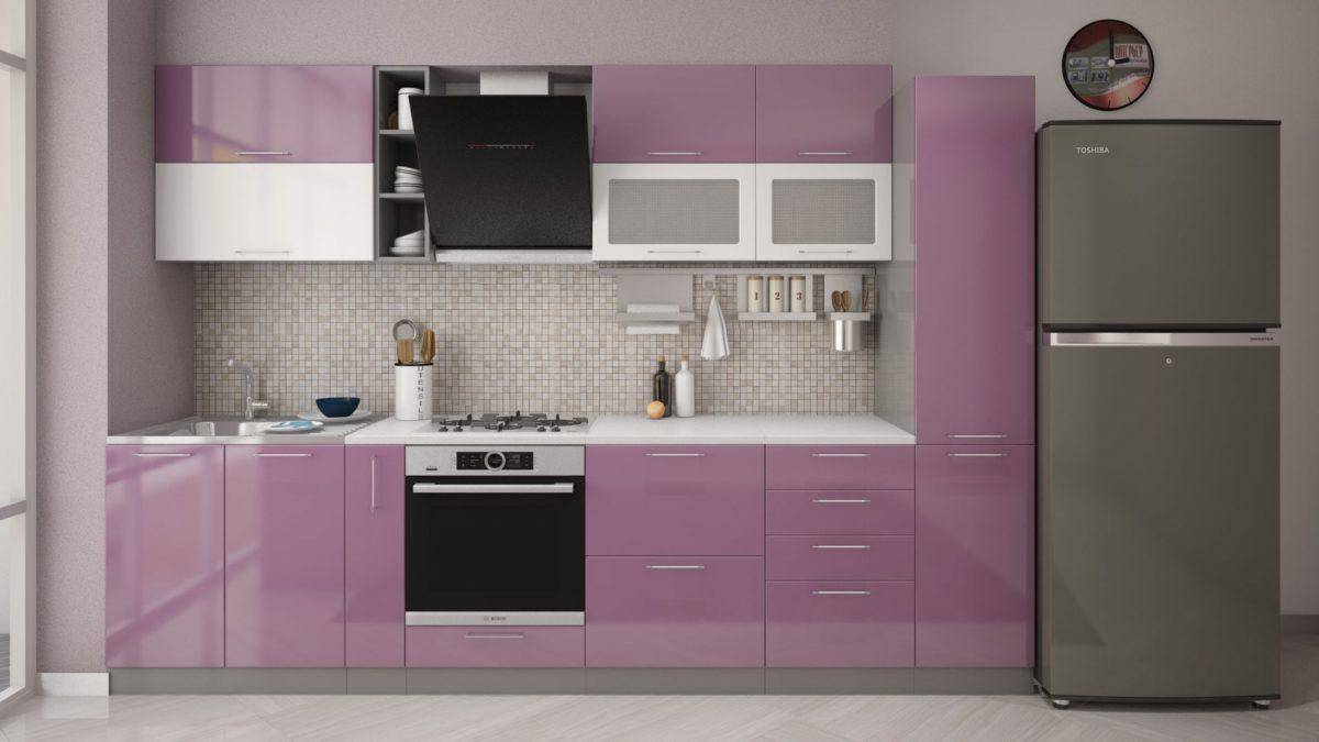 Фото кухонных гарнитуров, выполненных в разнообразных оттенках сирени, показывают, что их форма зависит от имеющегося пространства и его оформления.