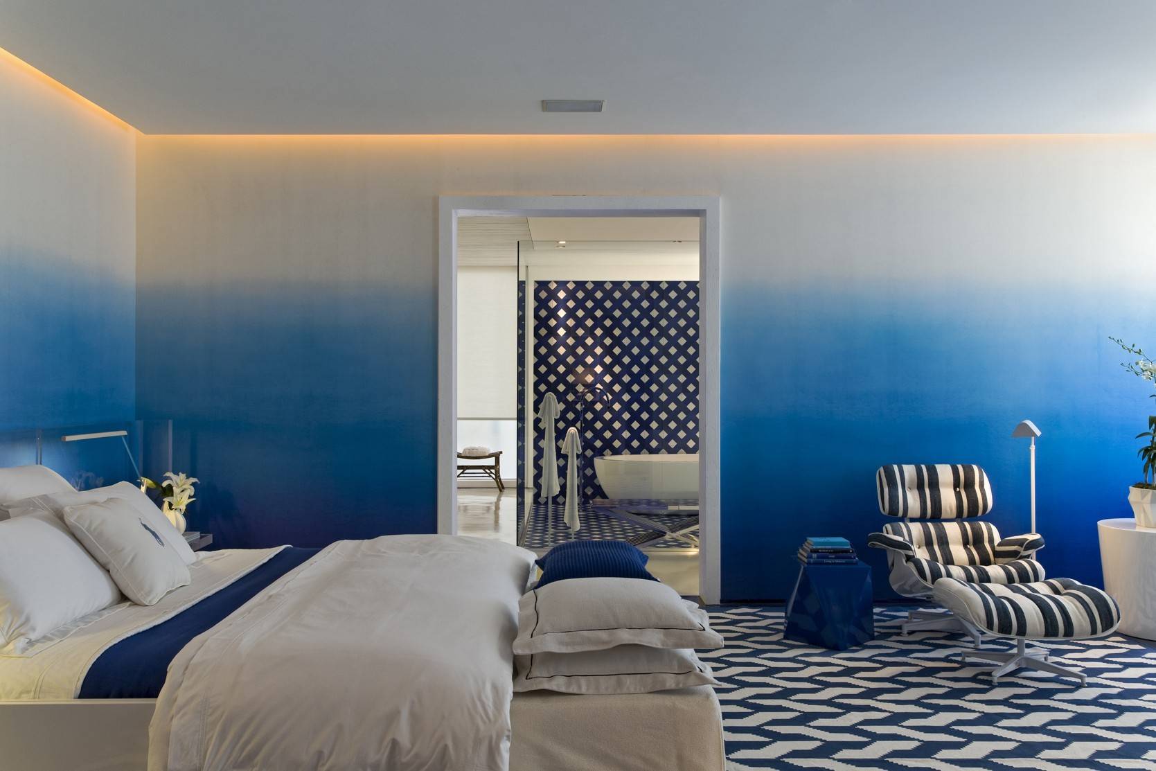 Здесь все аналогично акцентированному окрашиванию. Вся поверхность в помещении покрывается одним выбранным цветом, а одна часть должна отличаться. Но секрет в том, что применяются не разные краски по цветам, а тона одного цвета различаются по насыщенности. Получается градиент. Дизайнеры часто используют до четырех тонов – прихожая окрашивается в один оттенок, спальная – в другой, для стен на кухне – используется третий цвет.