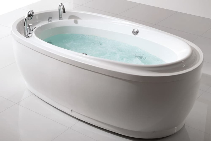 - Овальные и круглые. Являются скорее предметами роскоши. Они занимают много места и подходят для установки только в просторных помещениях. Часто устанавливаются на постамент и оснащаются приспособлениями для массажа. Размер обычно предусматривает вместимость более 1 человека.