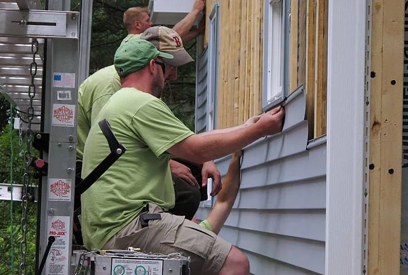 На такой вид строительных работ установились довольно демократичные цены. Дело в том, что фиксировать небольшие и нетяжёлые листы довольно просто и быстро. И если вы уже подобрали для своего дома наиболее подходящий вид сайдинга, то вам будет полезна информация о том, как производится монтаж виниловых сегментов.