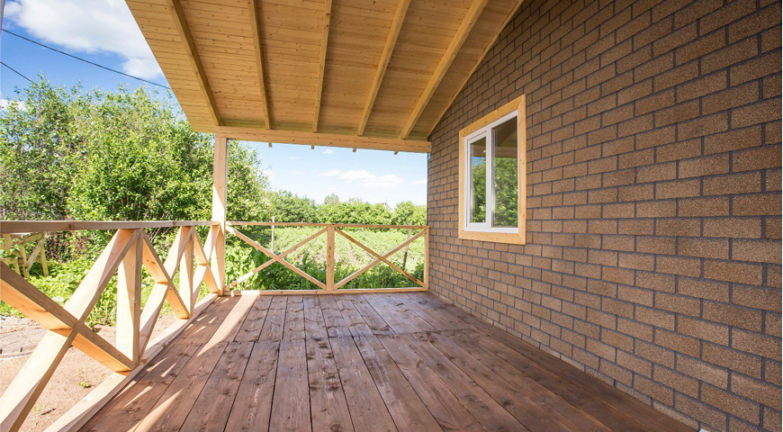 - Деревянный – представлен блок-хаусом, имитацией бруса и другими видами. Выполнен из дерева, потому стоит дорого. В уходе требует покраски и шпаклевания время от времени.