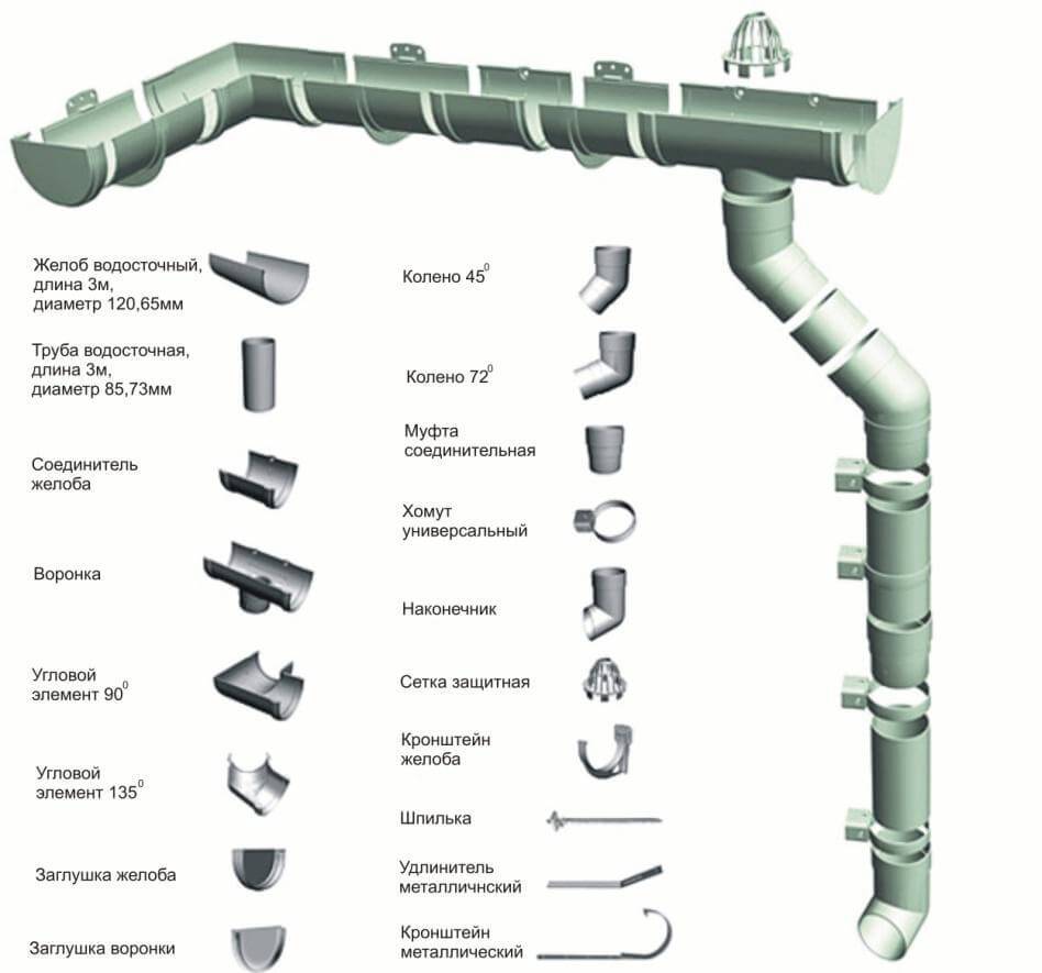 желоба, они же лотки, которые устанавливаются на карнизе крыши, и основная их задача – собрать дождевую или талую воду со скатов;