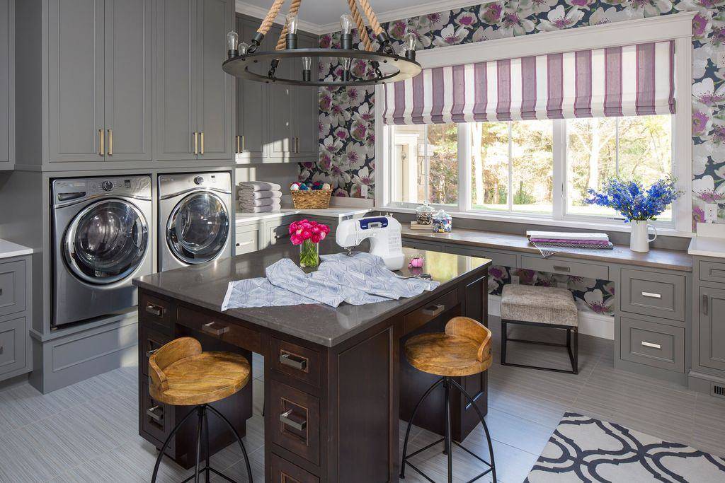 Полезно выбрать мебель со встраиваемой стиральной машиной в специальную нишу, она может быть открытой для прямого доступа или с дверкой, которая поможет вам сохранить общую стилистику помещения.