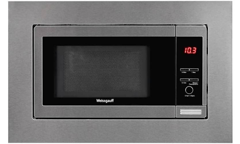 Встраиваемая СВЧ-печь чёрного цвета, размеры — 59,3×38,8×29,1 см. Мощность излучения — 700 Вт. Внутренний объём — 20 л. Диаметр поддона — 24,5 см. Внутреннее покрытие сделано из эмали. Вес — 16,2 кг. В модели предусмотрено 7 уровней мощности и 9 автопрограмм приготовления пищи. Достаточно выбрать вес или количество порций, тип блюда, и микроволновая печь сама подберёт программу приготовления. Максимальное время таймера — 95 мин. LED-дисплей, сенсорное управление. Установлена функция QUICK START, за счёт которой с одного нажатия печь включается с усиленной мощностью. В отличие от Weissgauff HMT-205 содержит кварцевый гриль мощностью 900 Вт. Цена — 14190 рублей.