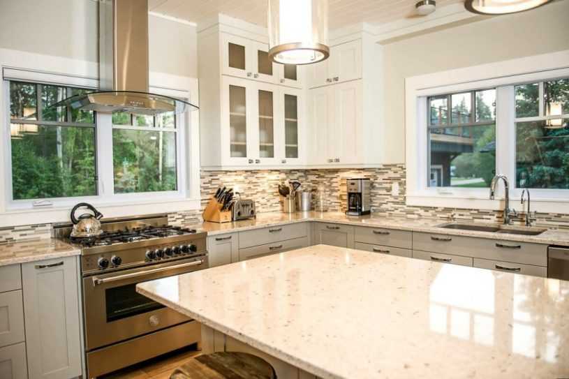 Но даже если все просчитано и выполнено правильно, могут возникнуть проблемы. Часто приходится бороться с выступом в углу, придумывая изощренные схемы, как бы его обойти. Выходом становится монтаж конструкции при одновременном использовании дизайнерских приемов. Определившись с необходимым размером вентиляционного короба, можно заказать кухонный гарнитур индивидуальной конфигурации. Это обстоятельство необходимо учесть при планировании всей композиции.