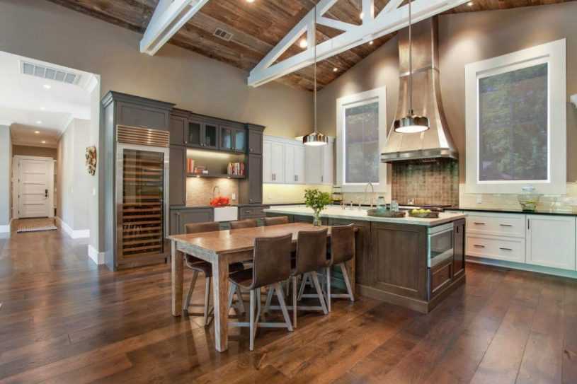 Другим приемом является скрытие короба под слоем отделки. Но можно и вовсе обыграть его, превратить в оригинальный декоративный элемент. Одно условие: чтобы добиться успеха, придется с самого начала все продумать. Уместно покрыть вентиляционный канал теми же материалами, что и соседние поверхности.