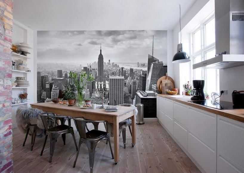 Фотообои в интерьере кухни