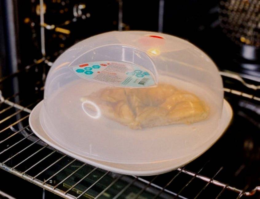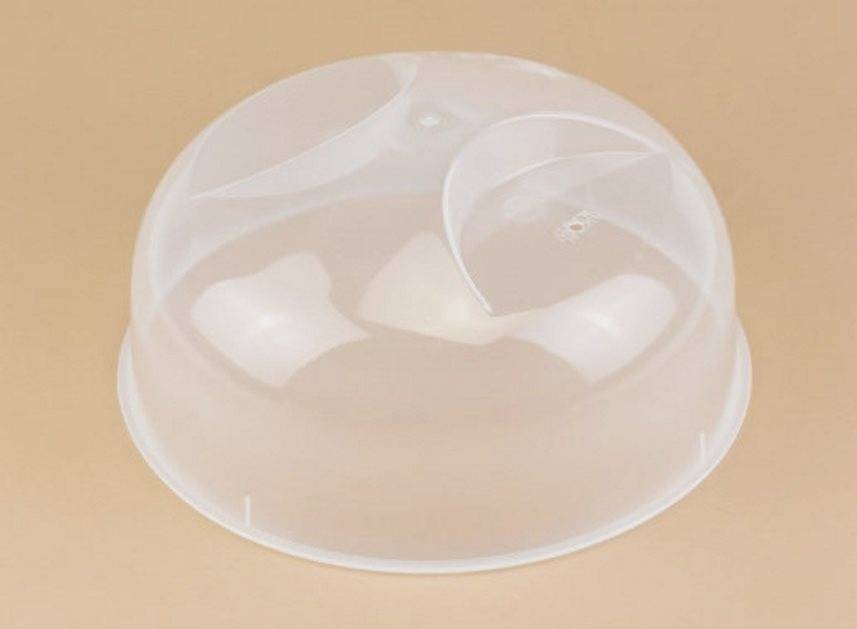Эта модель пользуется заслуженным спросом среди отечественных потребителей. Защитит СВЧ от загрязнений, сохранит блюда сочными. Для изготовления применяется высококачественный полипропилен. Такие приспособления входят в комплектацию современных микроволновых печей. За счет эргономичной формы, изделие оснащено удобными держателями, которые являются неотъемлемой частью изделия. Рабочий температурный режим, заявленный в инструкции, от -40°С до +110°C. Может использоваться не только для разогрева, но и приготовления блюд. Материал не впитывает посторонние ароматы. В режиме «Гриль» приспособление нельзя применять. Вес – 125 г. Диметр – 25 см.