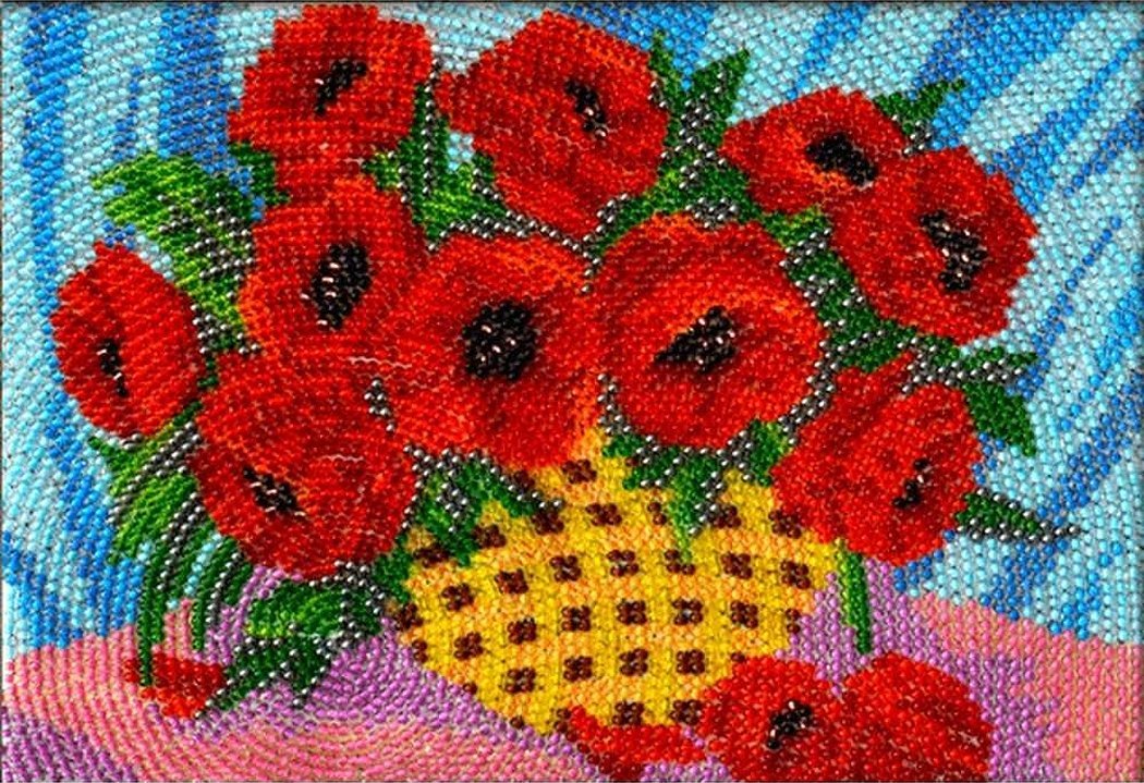 Вышивка маков бисером