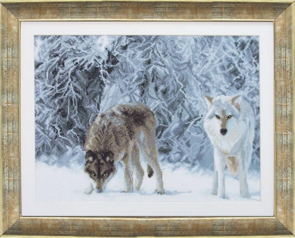 Вот, например, пара волков изображенная на зимнем пейзаже. Самец охраняет свою пару. Эта схема будет достаточно сложной для начинающих вышивальщиц. Поэтому, прежде чем приступать к таким объемным работам, начните с чего-то среднего.