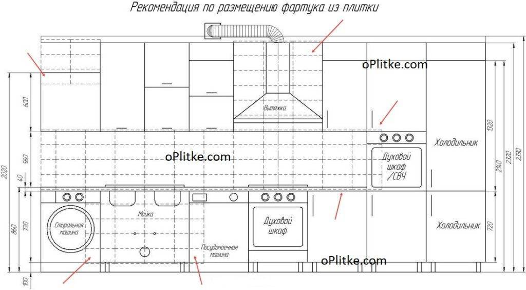 Длина фартука на кухне из плитки