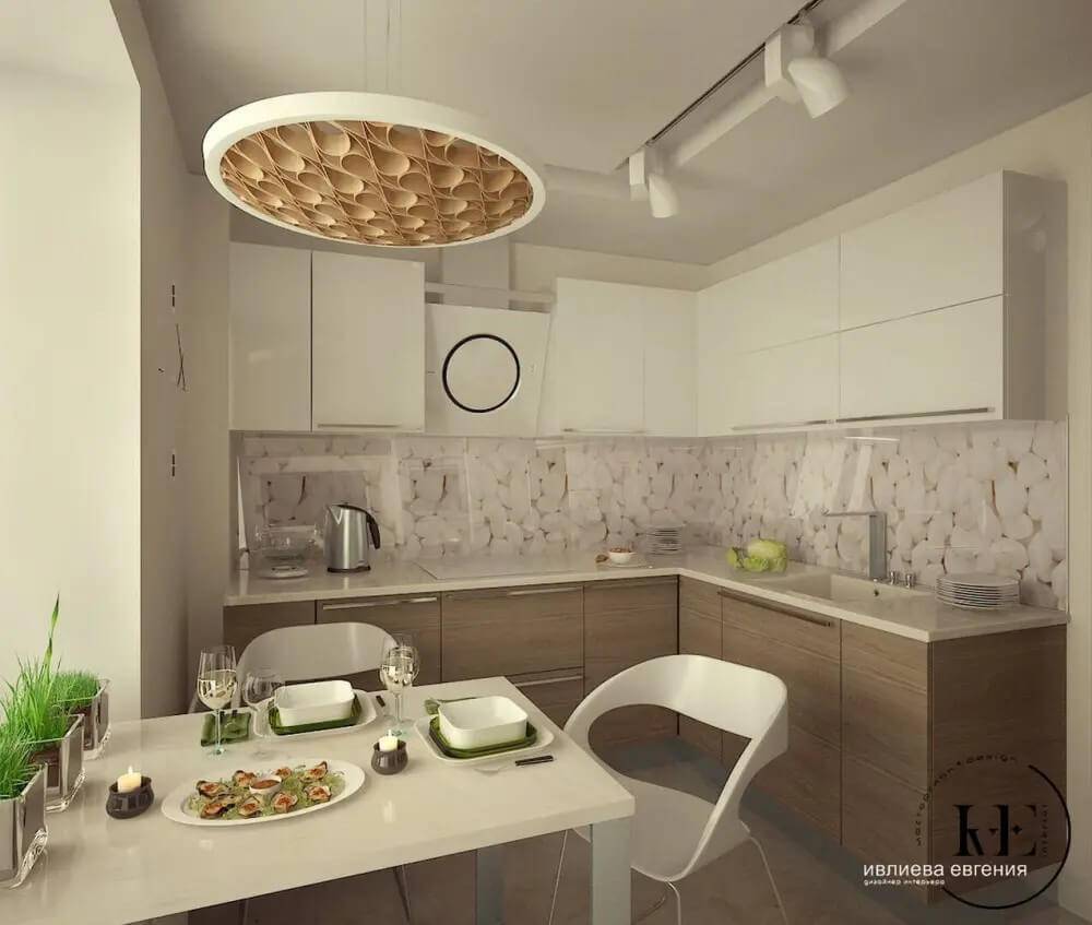 Освещения на кухне должно быть достаточно, это обычно основной свет и свет на рабочей зоне (используют точечные светильники). Если есть вытяжка, то нет необходимости монтировать светильники над плитой, так как лампы, которая есть в вытяжке достаточно для освещения зоны. Плюс к этому освещение без вытяжки будет быстро загрязняться, что усложняет уход за кухней.