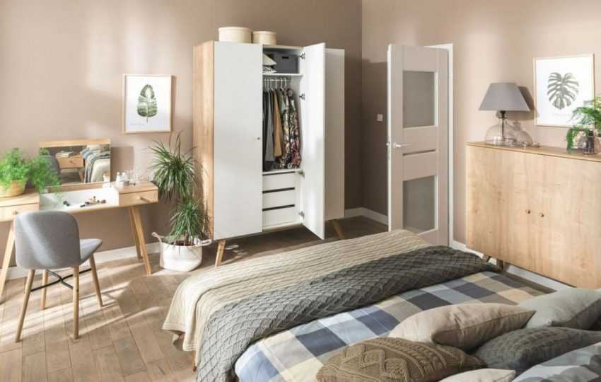 Очень популярны, а в маленькой спальне, возможно, незаменим будет шкаф-купе. Встроенная мебель максимально полно использует пространство, раздвижные двери не потребуют дополнительного места для открывания. В шкафе-купе можно использовать и прием для визуального увеличения пространства — зеркальные двери. Также можно дополнить его подсветкой.