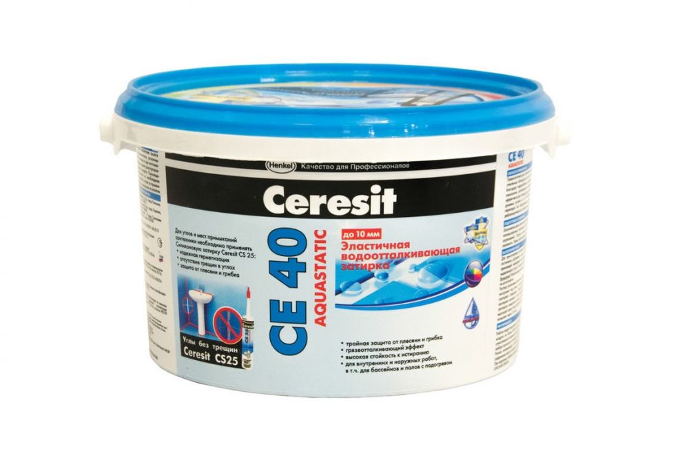 Самая часто используемая в странах СНГ затирка именно ceresit(церезит). У них есть затирка нескольких видов CE 33, CE 40 и CE 25. Чаще всего применяется затирка церезит се 40 и у неё самая широкая палитра цветов. Церезит СЕ 40 неплохо держит влагу и мелкие деформации, а значит меньше вероятность, что она потрескается при мелких усадках и вибрациях. Вполне неплохой выбор, но по цветам есть нюансы.