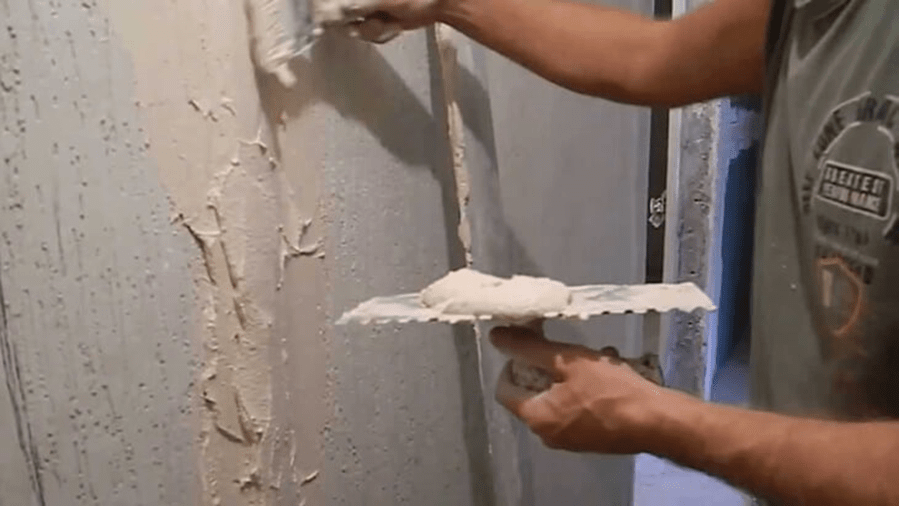 Растворная смесь готовится немного жиже, чем для оштукатуривания, небольшое ее количество набирается на терку, инструмент под углом прижимается к поверхности стены, смесь под нажимом растирается по всей плоскости.