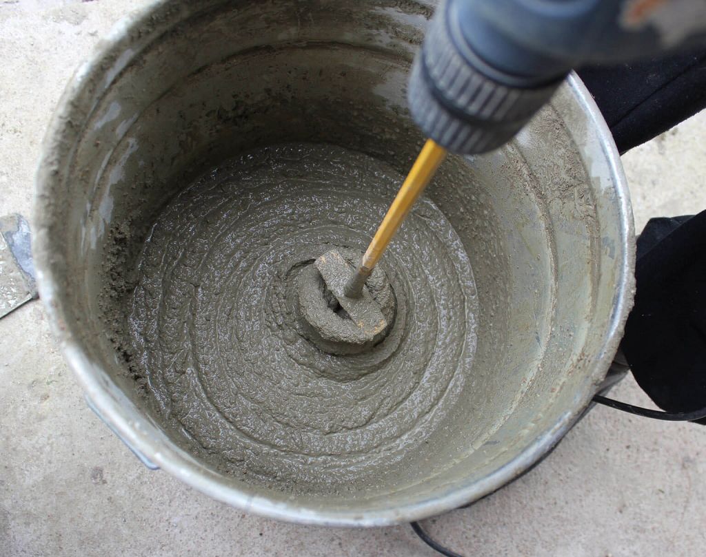 - в емкость для приготовления раствора засыпается необходимое количество цемента, добавляется просеянный песок, компоненты перемешиваются до однородности;