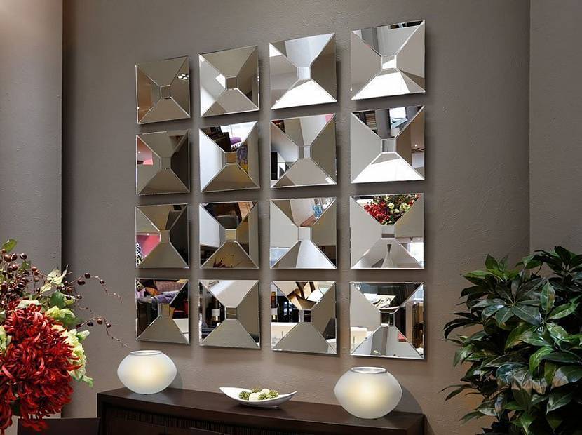 Независимо от формы элементов зеркальное панно создаст сказочный антураж в доме, наполнит его светом, завораживающей игрой бликов, манящей заглянуть в загадочное зазеркалье.
