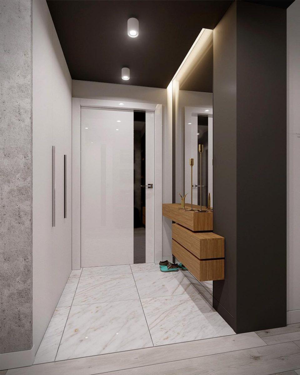 Благодаря этому появляется отличное место для обувания, и, вместе с тем, комната выглядит очень стильно.