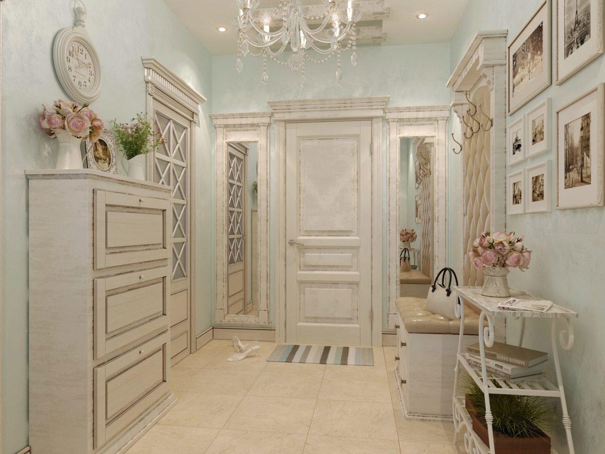 Изюминкой оформления коридора в стиле прованс станет зеркало в виде окна. Поверх зеркальной плоскости располагают детали, имитирующие оконный переплёт.