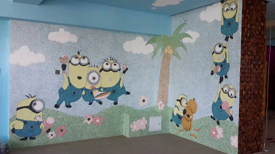 Абсолютная экологическая чистота жидких обоев для стен позволяет их применять в детских комнатах. Здесь при оформлении можно нанести изображения животных, сказочных или «мультяшных» героев