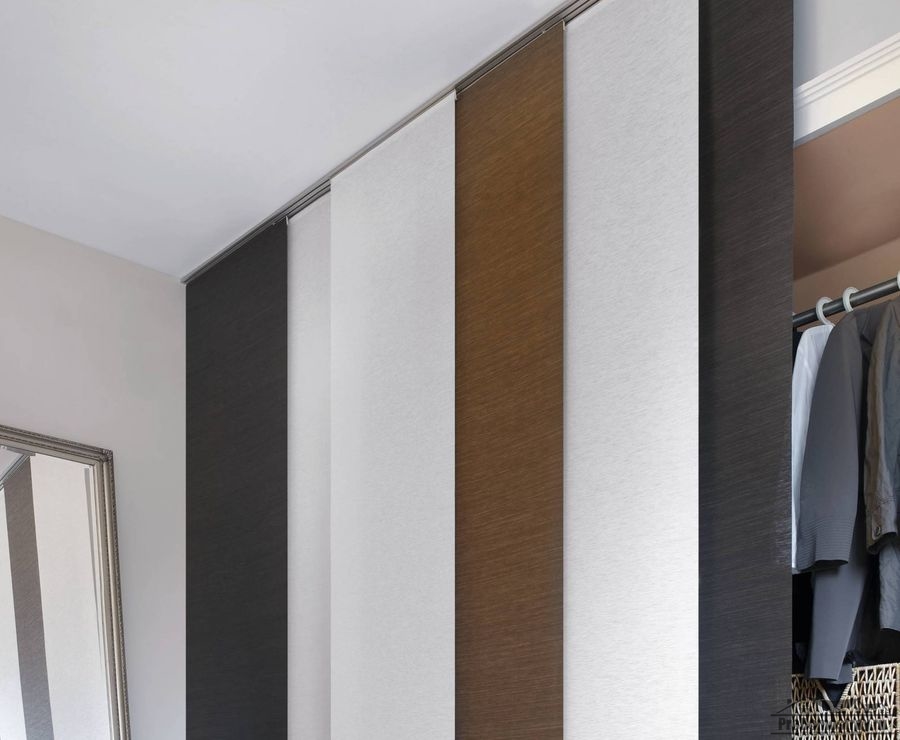 - Гардеробная. Отгораживается японскими шторами. Они походят на перегородку, поэтому данная зона, обособленная таким способом, напоминает шкаф-купе.