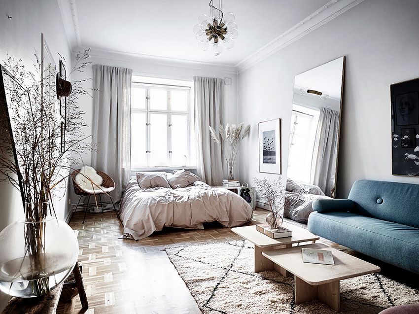 Выбор текстильной занавески в качестве разделителя оправдан при наличии мебели, которая будет органично вписываться в интерьер не только спальни, но и гостиной. В этом случае на помощь приходит мебель — трансформер, очень удобный, но затратный вариант.